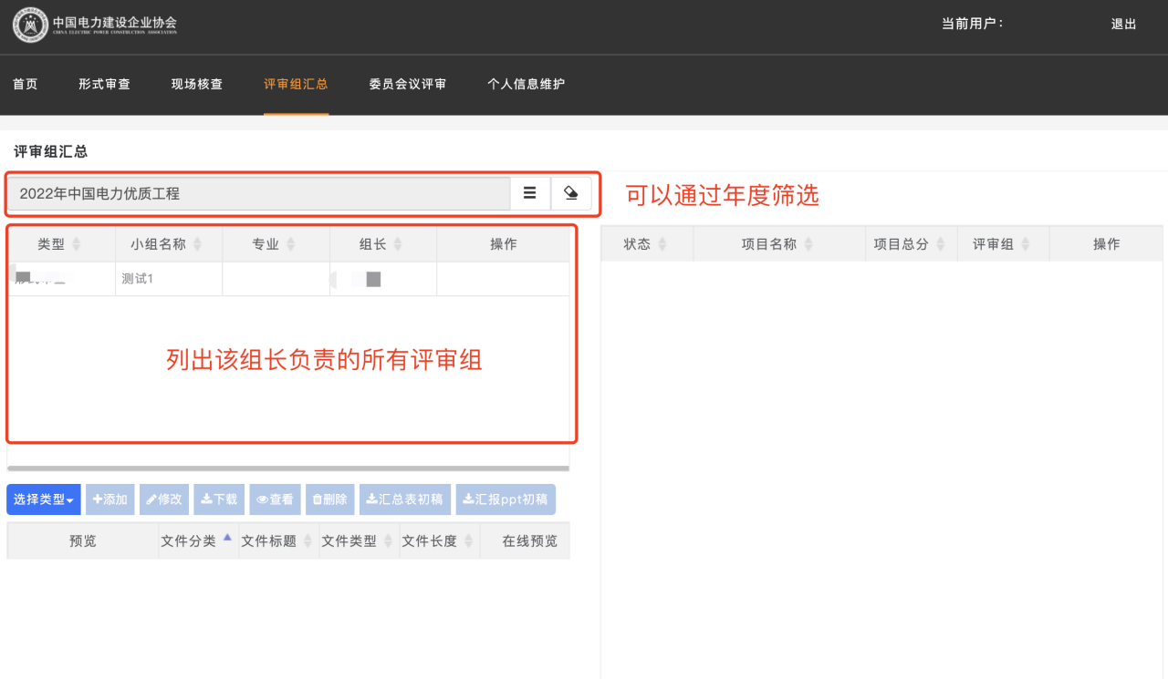 点击左侧的评审组,可以在右侧看到该评审组对应的评审项目。